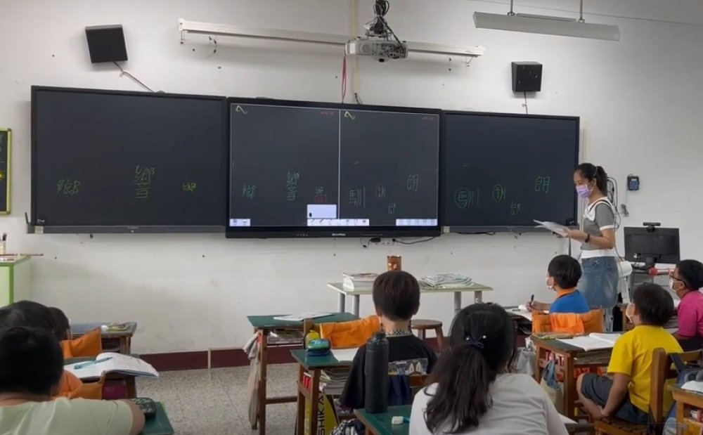 ● 圖片1 一台教育白板搭搭兩台無塵電子黑板,雲林越港國小