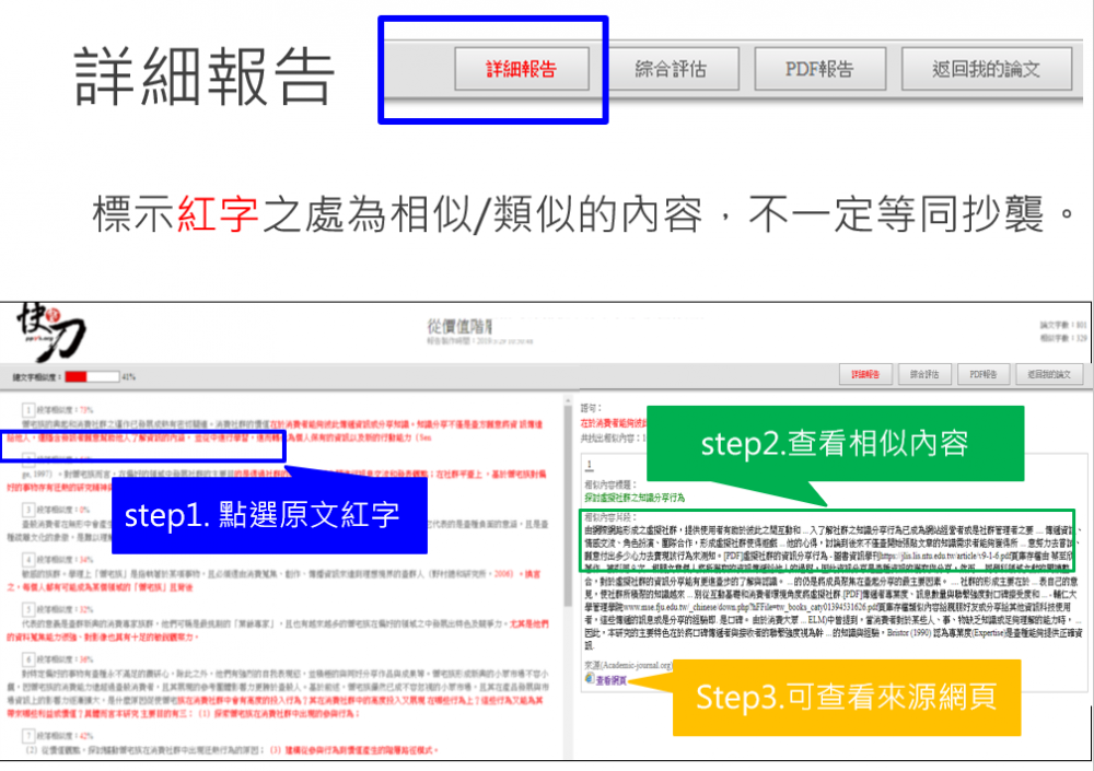 快刀是一款專門用來比對「閱讀心得」「小論文」抄襲相似度的利器,檢查同學交的讀書心得、小論文有沒有抄襲、模仿、改編的問題?輕鬆快速又正確,完成作業審核繁瑣的抄襲比對工作,幫助老師您把關,洞察學生的文章相似度,以防止各項抄襲問題,快刀是一款專門用來比對「閱讀心得」「小論文」抄襲相似度的利器做好預防工作,比事後補救省事,近年有多所高中,開始使用快刀,來確保同學文章品質,特別是一些高中的家長會,很關心抄襲問題,為了確保公平性,也自掏腰包承租快刀,這點是我們沒料到的。