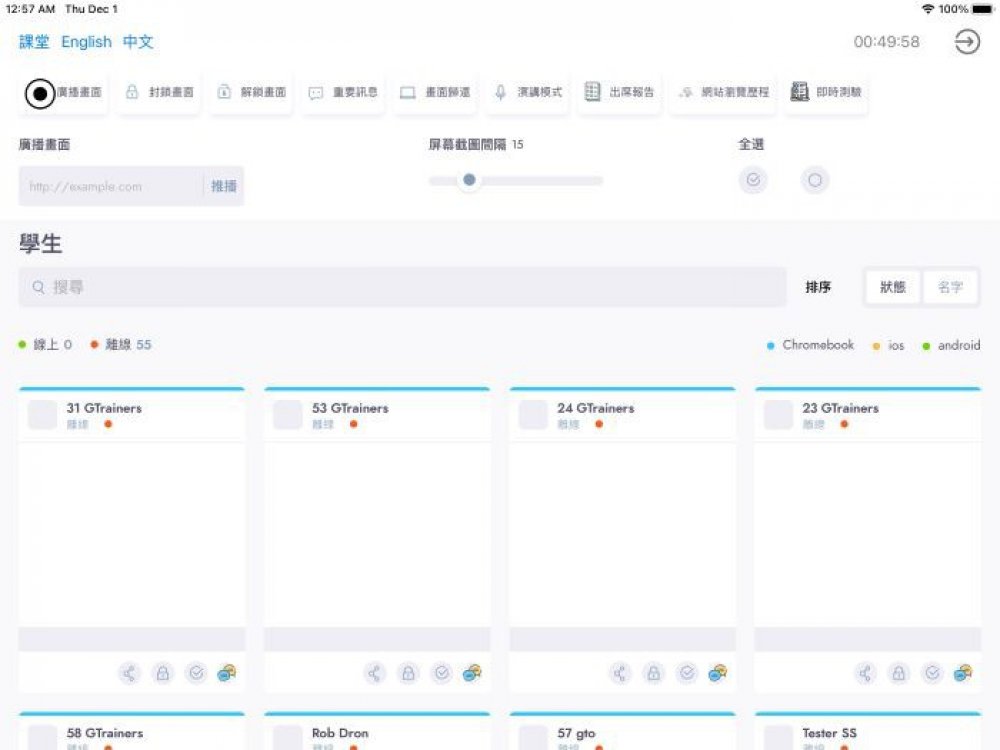 能實時載入學生螢幕,並允許畫面廣播