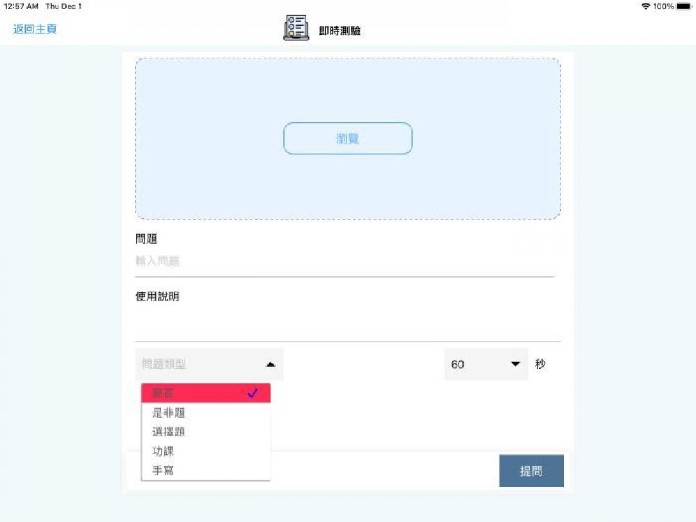 測驗或搶答題,支援手寫作答及自動儲存答案