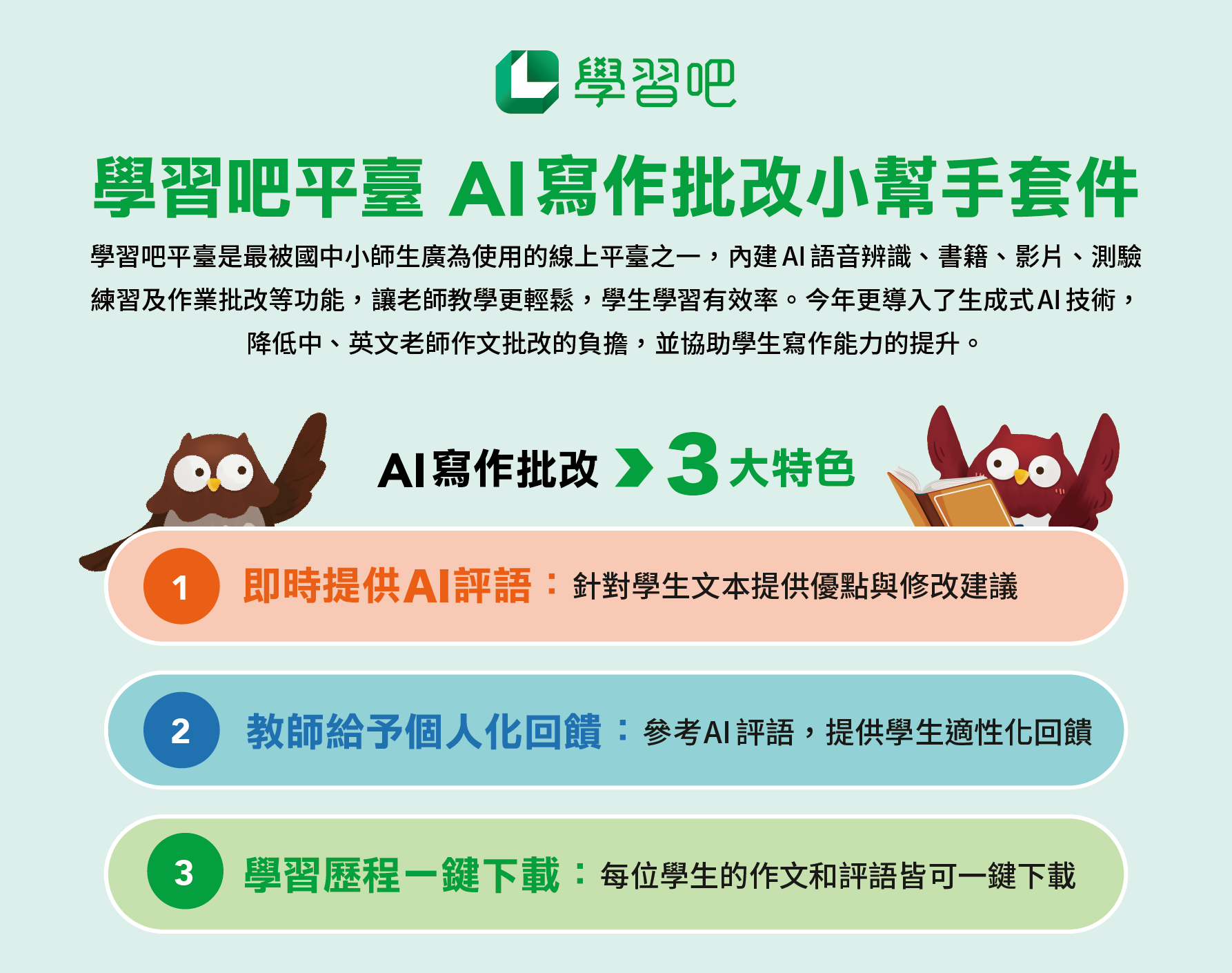 一、學習吧:教學備課平臺,全台首創AI工具輔助,有效提升教育效率。