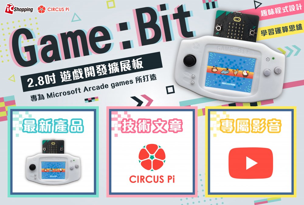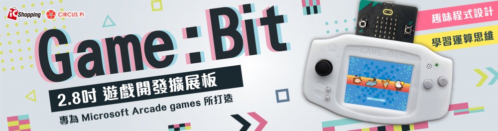 Game:Bit 是依照 Microsoft Arcade games 所打造的全新產品,提供學習 micro:bit 的使用者不一樣的選擇。跳脫以往用擴展板搭配感測器製作專案的模式,以創作趣味遊戲的方式,激發學習者不同的程式設計思考。 從如何設定計分方法、角色動作、背景與音樂的搭配,到勝負的判斷與結束的流程,全憑遊戲創作者自行決定整個遊戲的一切。