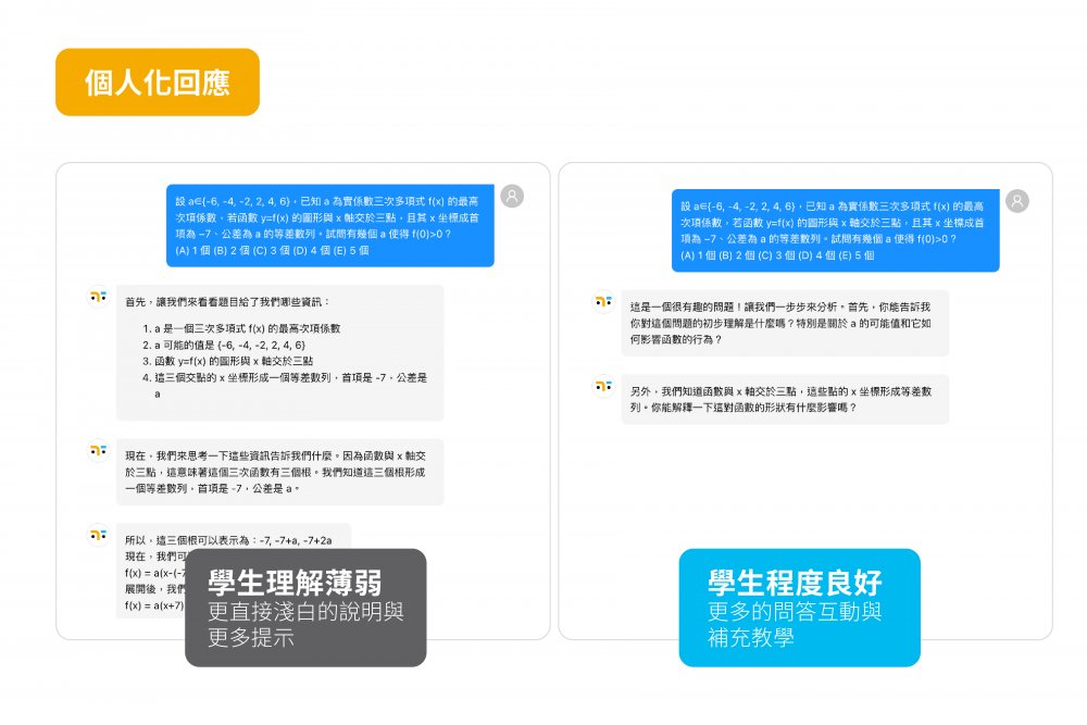 進一步的,AI 就會協助篩選相關教材、安排學習路徑,並根據學生的程度生成對應的講解和教學說明,符合學生學習的難度與進度。就像一位長期陪伴、理解學生的真人家教老師,讓學習事半功倍更輕鬆愉快。