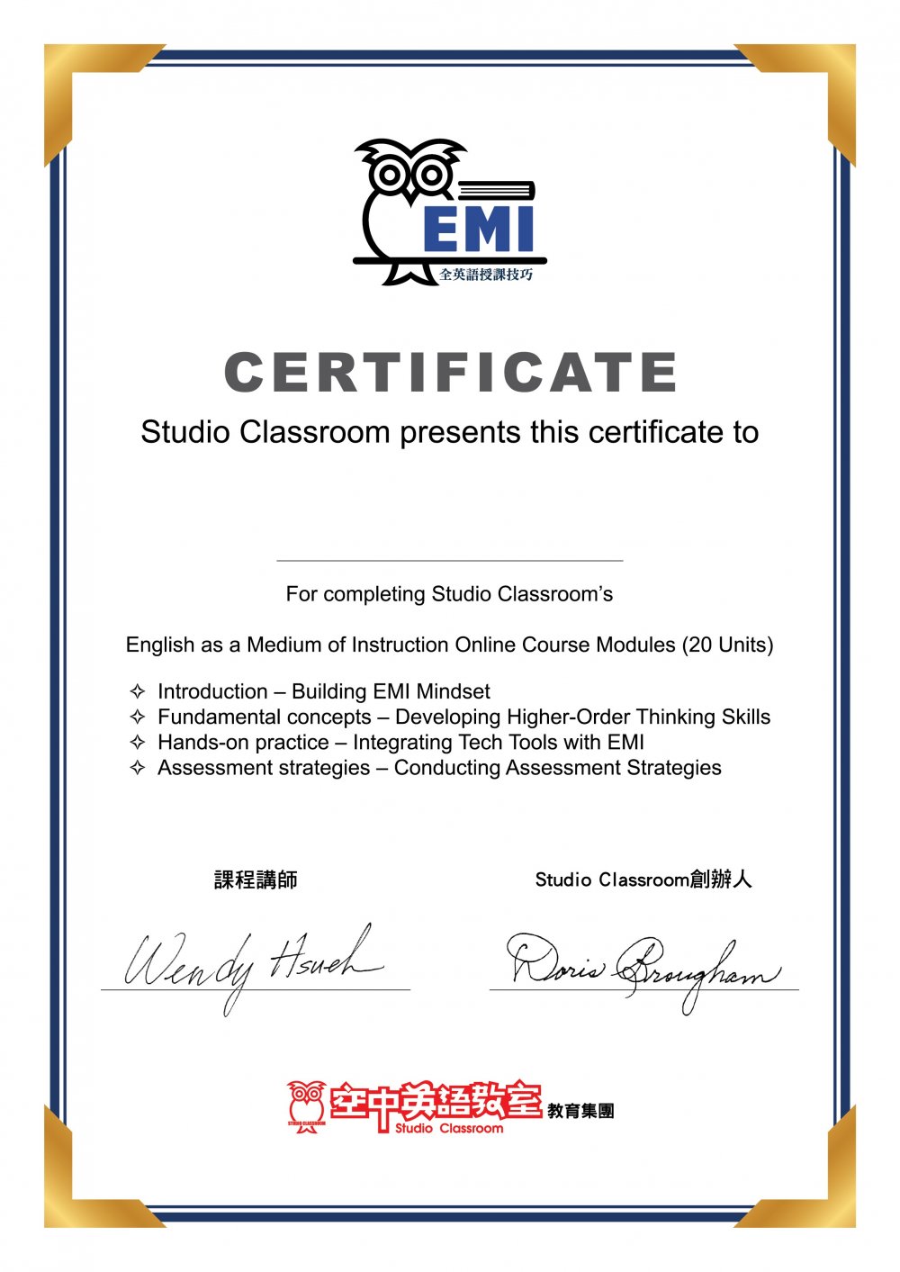 在完成這系列課程之後,您將會對EMI的目的與設計操作方式徹底改觀,更重要的是,您將可參考課程中的分享:關於活動設計的具體策略,來規劃出配合您所教授的科目內容,以及最適合學生程度的EMI課程。