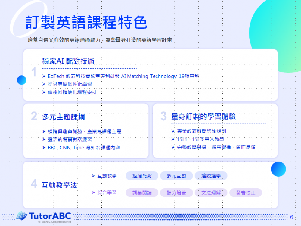 透過年齡、程度、興趣發現最適合的老師、同學、教材,其符合108課綱與遵循CEFR國際標準,提供專業師資,教材和上課方式,不但協助學生奠定基礎也能引導學生自信開口說,讓學生輕鬆接軌學校課程。