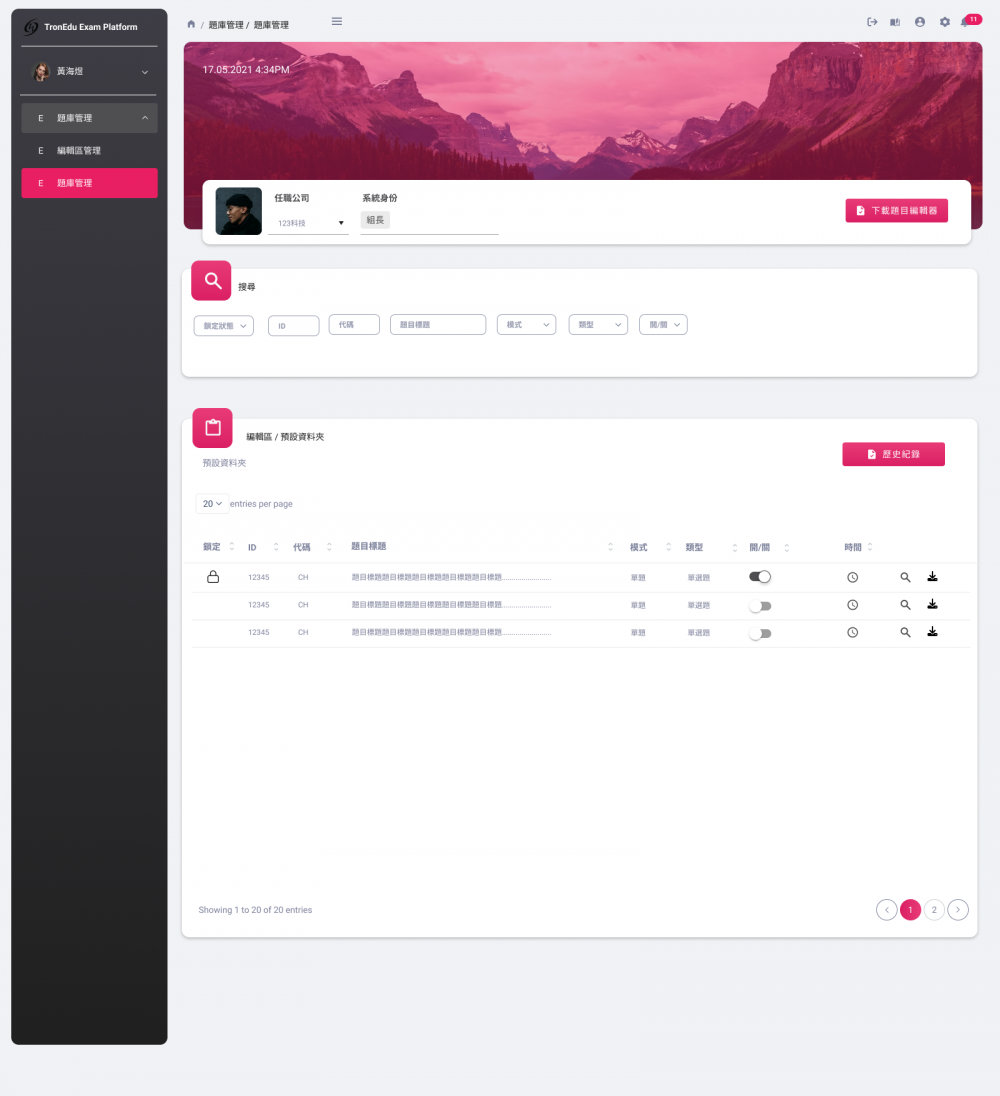 創益學 ( TronEdu ) 內含課程平台系統 ( Curriculum Platform Node ) ,為支援小學、國中、高中的五個學習階段、108課綱、全領域及領域架構、全科、全版本及知識架構的一套課程管理系統,系統可透過昀揚科技的雲端資料中心更新教育部公佈每年最新版的知識架構與課綱,亦可應用在專業證照、教育訓練、高普考、幼兒等需求。您可以客製化知識架構及課綱,搭配創益題平台系統 ( Exam Platform Node ) 與 CRStream 多媒體串流平台系統 ( CRStream Platform Node ) ,利用本產品快速部署線上考試、出卷、線上影音函授課程、電子書等雲端應用。