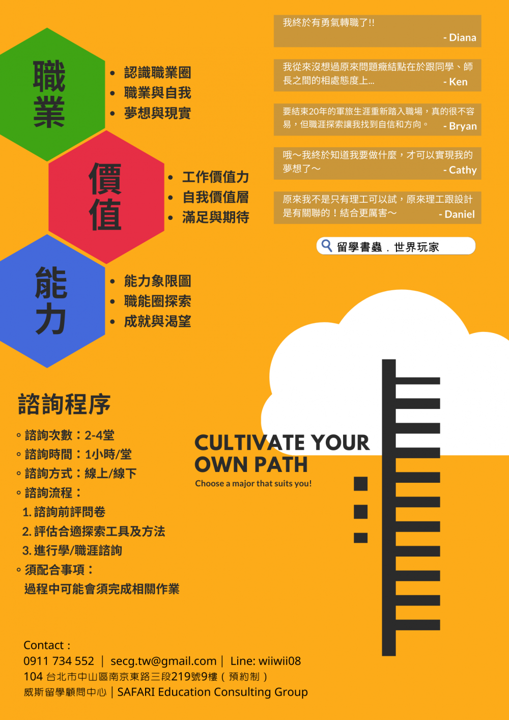 因此,我們具備「職涯與興趣探索諮詢師」身份