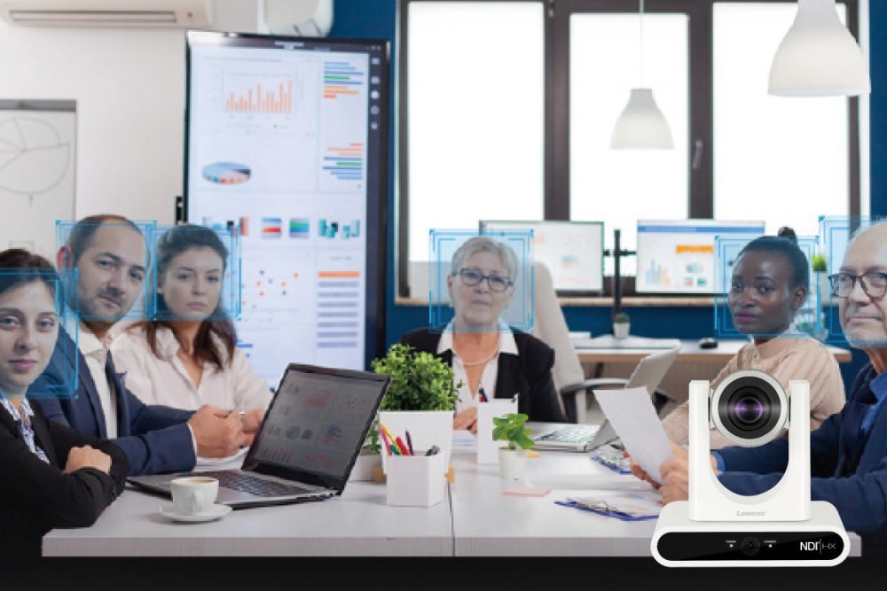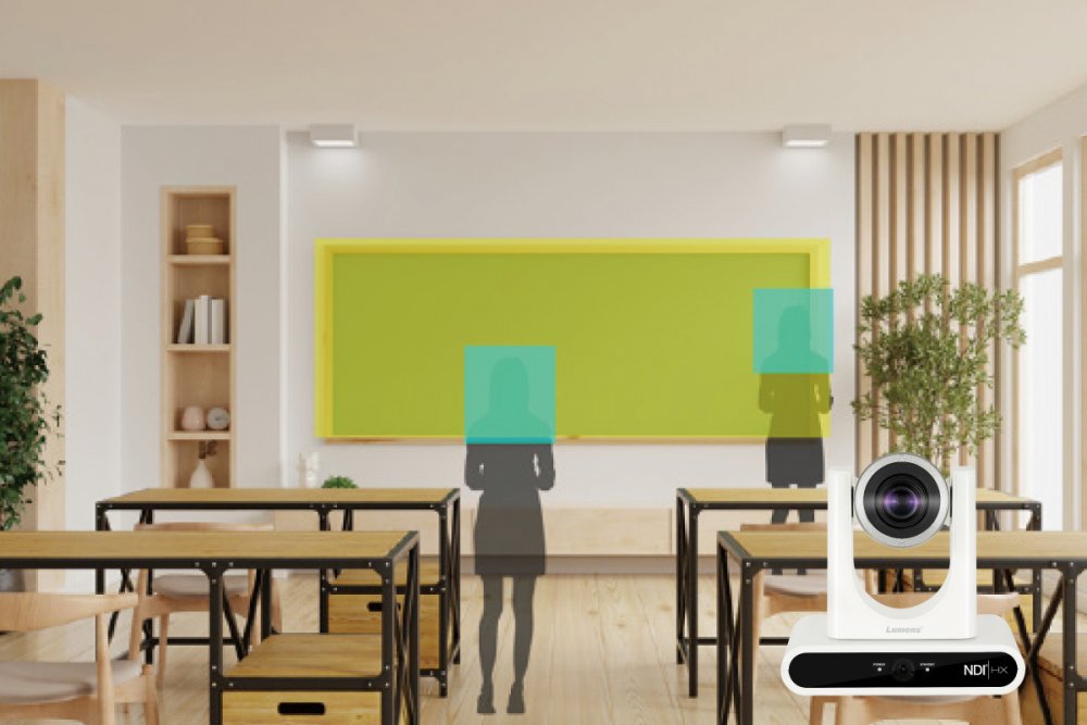 Lumens® VC-TR40 雙鏡頭自動追蹤攝影機,支援 1080p 60fps 高畫質影像與 20 倍光學變焦鏡頭,能夠清晰拍攝目標、呈現完美影像。雙鏡頭中的主相機聚焦拍攝單人畫面時,輔助的全景攝影機亦可同時全視角捕捉到整體畫面。