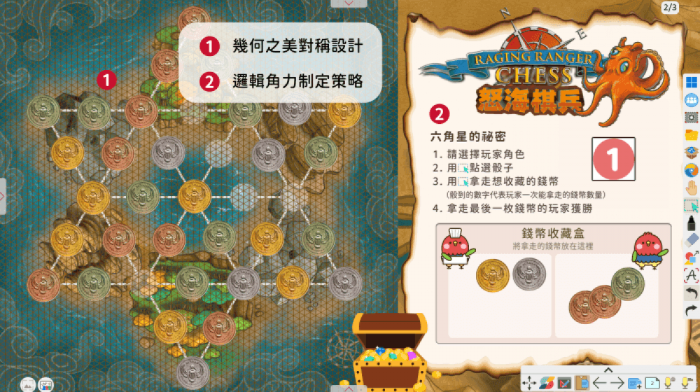 怒海棋兵中利用「數學對稱排列」,創造出不同形式的棋盤,讓內容不僅美觀,還有助於遊戲的平衡。遊戲過程中,玩家需要巧妙地運用攻守策略,佈局棋子,並熟悉數學對稱特性制定戰術,如此一來,能潛移默化地訓練玩家的心算能力、專注度以及促進團隊合作。這不僅是一款有趣的遊戲,更是門培養邏輯性思維和數學能力的絕佳教材。