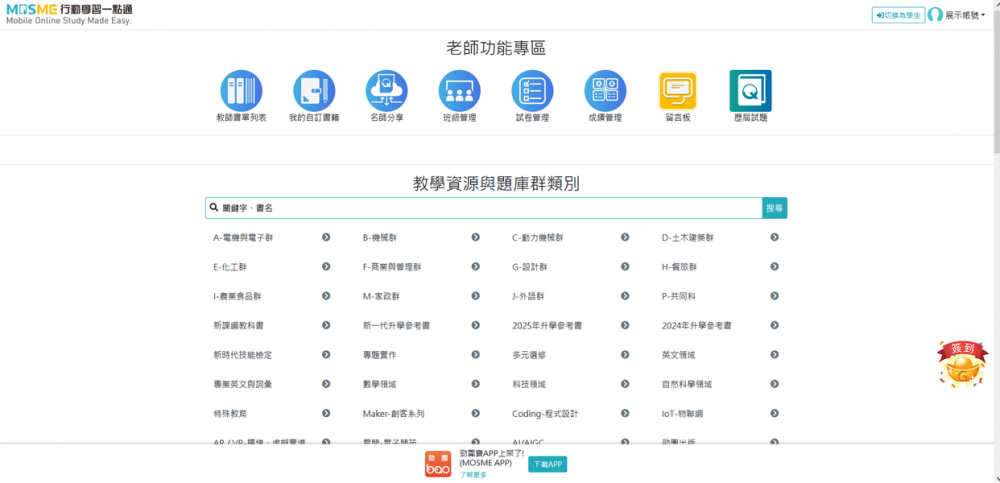 MOSME提供教師課前準備、課中使用、課後出作業的強力支援