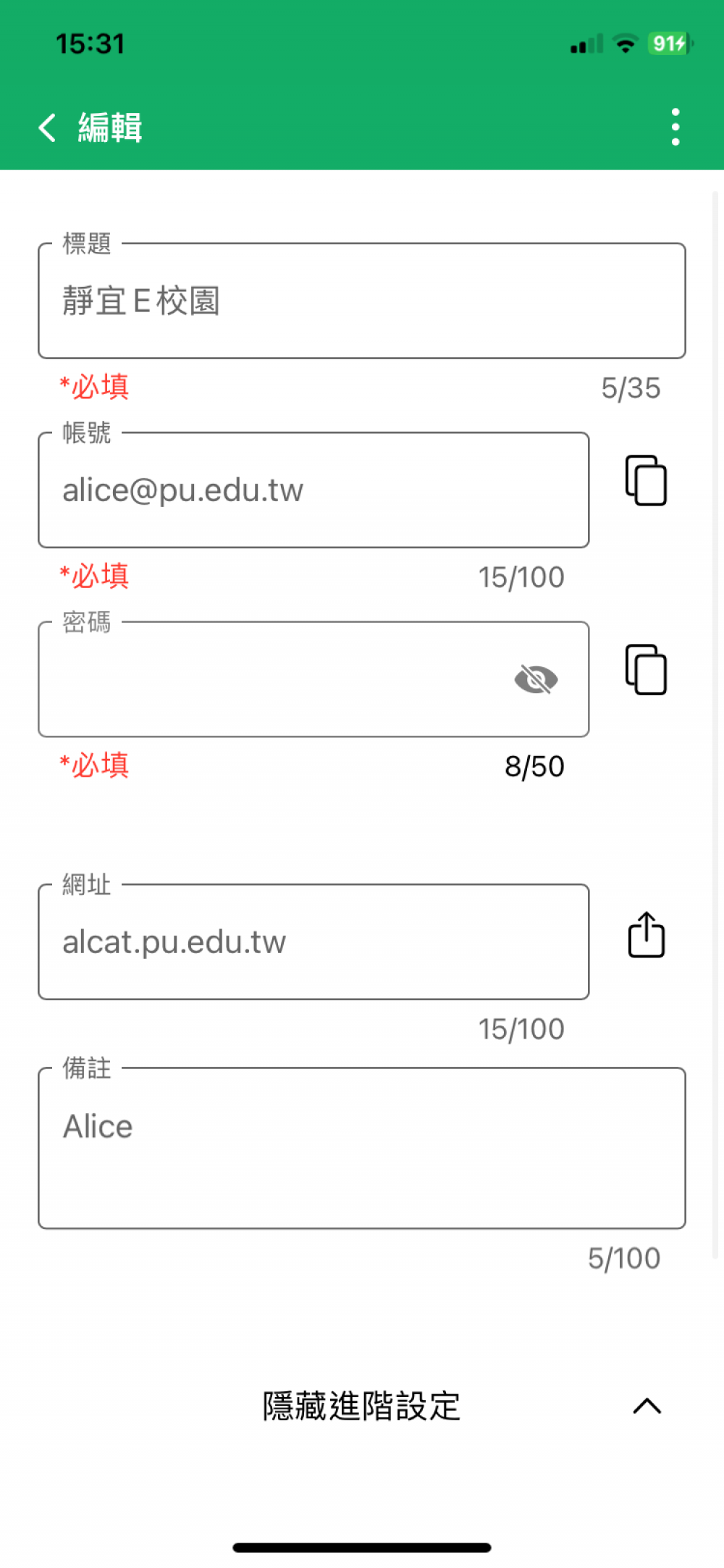 強密碼,長度至少為8碼,應包含英文、數字、特殊符號及大小寫混和。