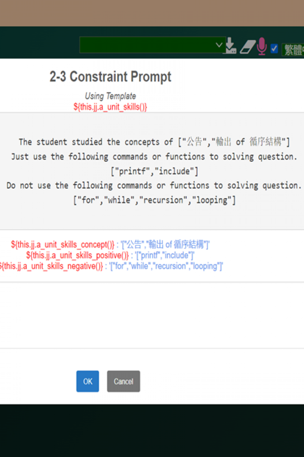 配合平臺原有的拓展式學習地圖與精準教學,加入生成式AI助教模組,在AI助教模組中,教師可以自行定義助教角色, 以單元教材及評測內容的知識點為範圍,提供學生解題方向,經系統客觀採集學生行為推論的客觀學生學習型態
