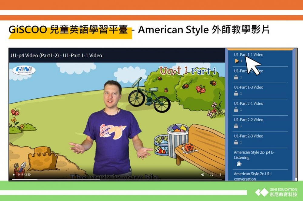 American Style線上課程設計依兒童的生活經驗為主軸,分成3個Level,提供沉浸式的英語學習體驗。課程為美式發音和主題情境對話設計,通過214組生活情境對話和36個多元學習主題,讓學生在真實的語境中學習和應用英語。並通過360個常見單字和214組語法句型,強化學生的語言基礎,讓學生即學即用。外籍師資影音教學,讓孩子身歷其境。角色扮演活潑有趣,提高學習成效。美加外師對話影音教學,強化英語表達的流暢度,提升兒童說英語的信心