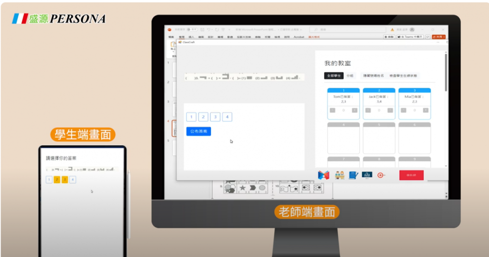 盛源Class Craft是一款即時教學互動系統,它可以讓老師在課堂上輕鬆地進行即時的任務派送,並且即時收到反饋,清楚知道學生學習進度,可以立即調整教學的進度。學生可以使用任何行動裝置掃描QR CODE加入課堂,老師可以依照需求進行分組,也可以課堂直接抽籤學生回答。