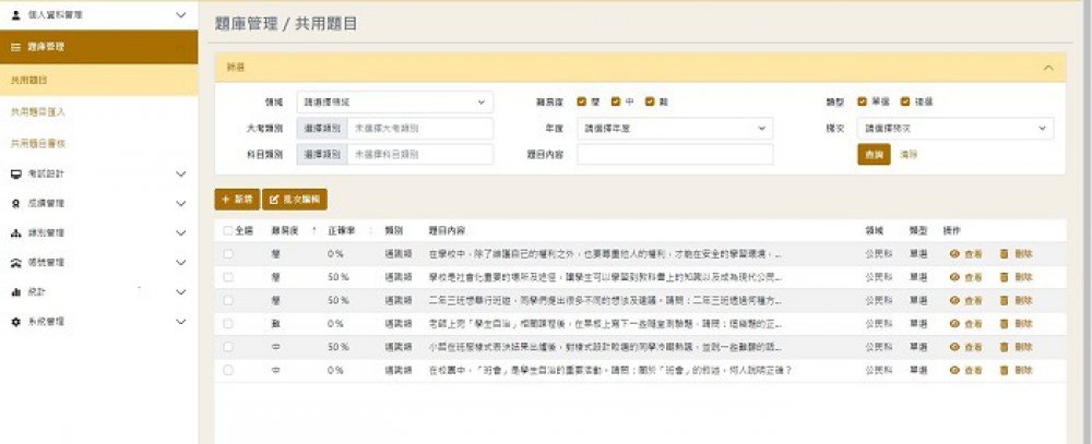 彈性針對試題難易度、答題正確率隨機出題