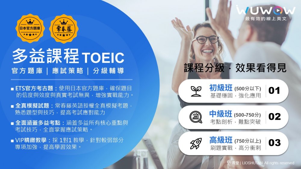 WUWOW線上英文致力於開發新的線上教學模式,期望透過網路科技的方式,協助更多的台灣學子,更有效率的學習!