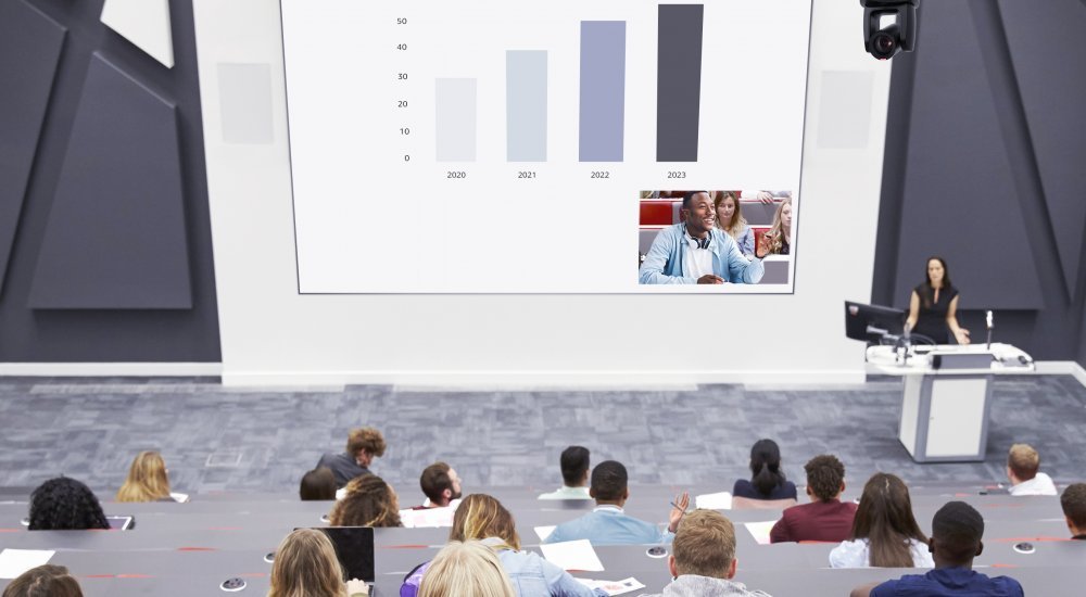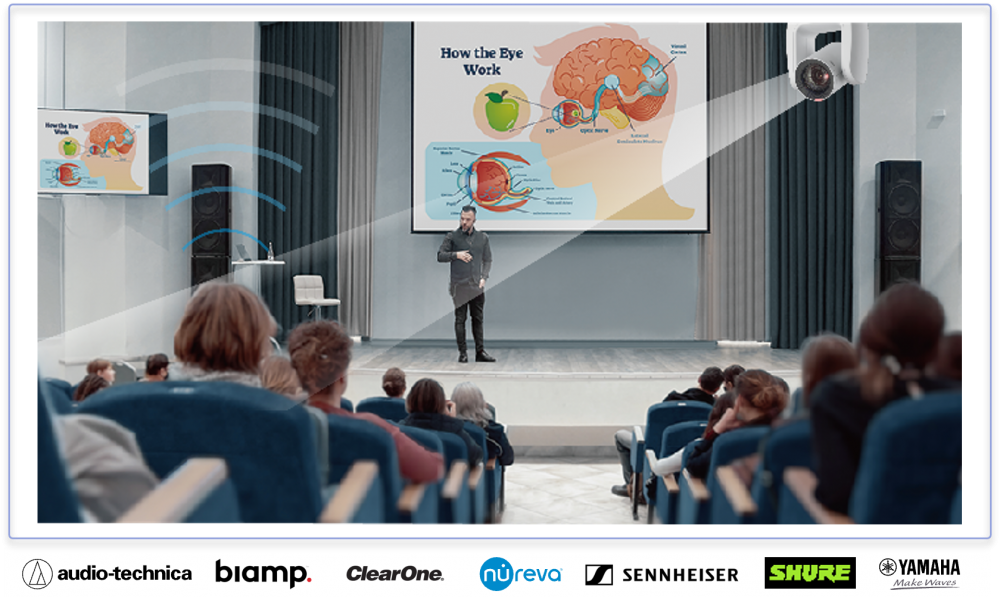 AVer 專業影音攝影機可透過「PTZ Link 軟體」或「MT300N 」影音追蹤控制盒整合多款揚聲器和麥克風系統,將攝影機快速轉換成聲音追蹤攝影機。PTZ Link 透過聲音追蹤科技驅動攝影機拍攝預設點,自動切換角度鎖定正在發言的與會者,為在會議、教育訓練、上課中的使用者帶來絕佳影音雙體驗。