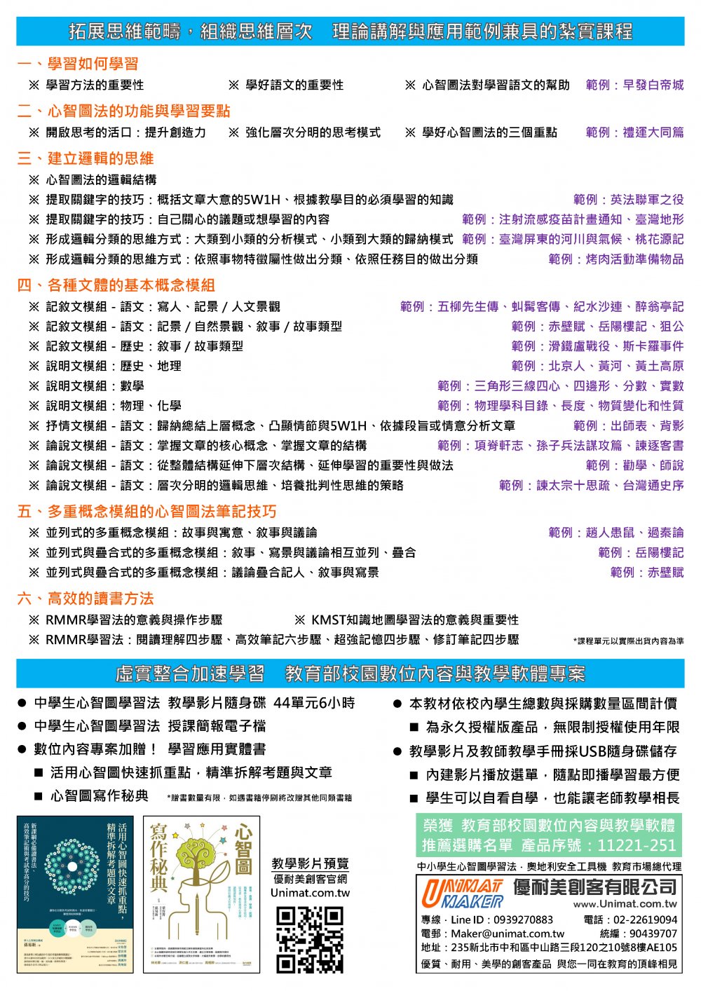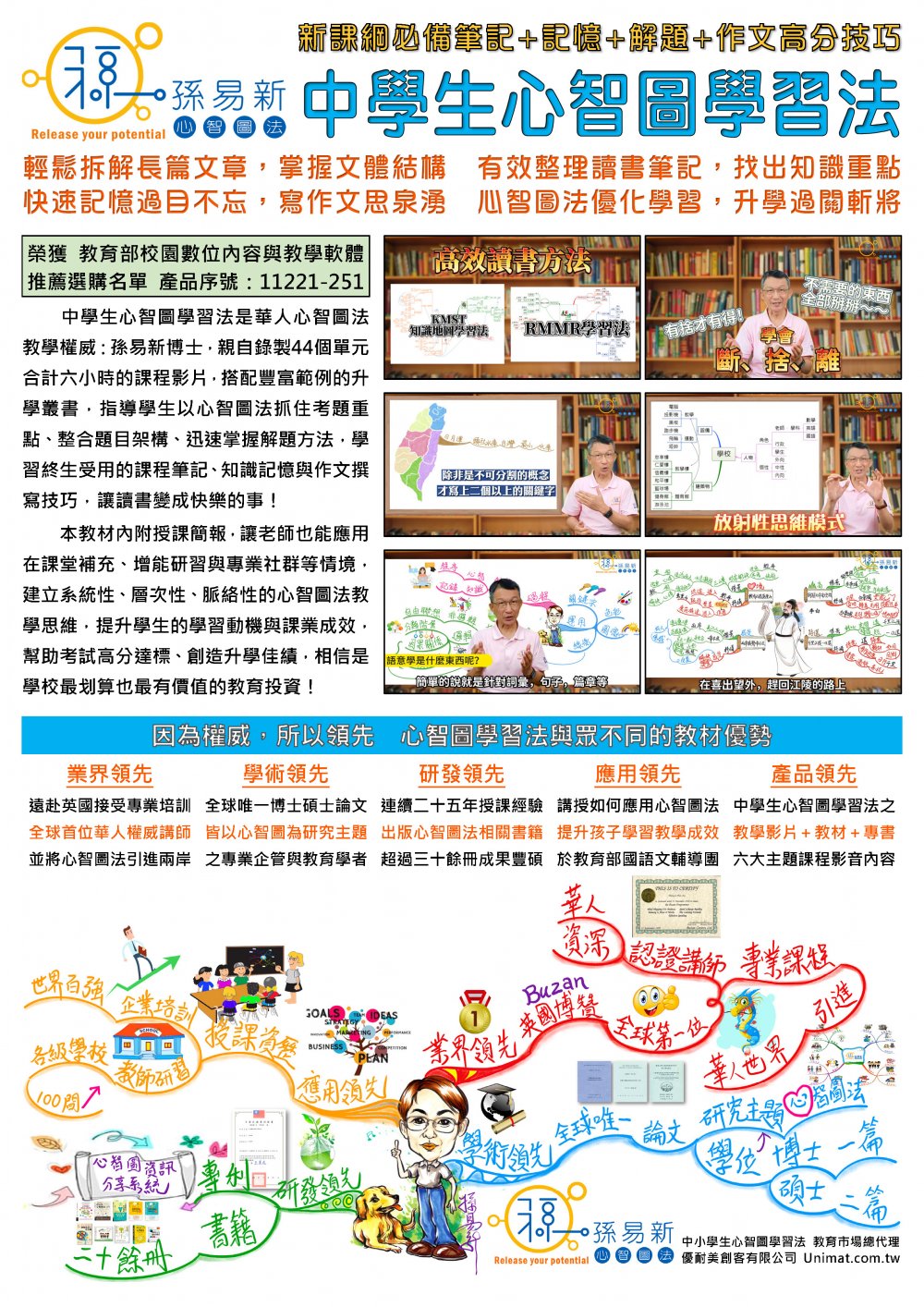 ※ 中學生心智圖學習法 教學影片隨身碟 44單元6小時