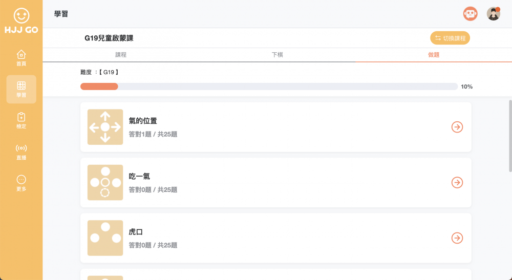 為結合學、練、玩的一站式圍棋學習平台,線上互動式影音課程、搭配AI對弈、覆盤系統,讓學習與練習效果更加倍,此外還有九路挑戰賽、天梯闖關等遊玩功能,是現代人玩學圍棋的最佳選擇。