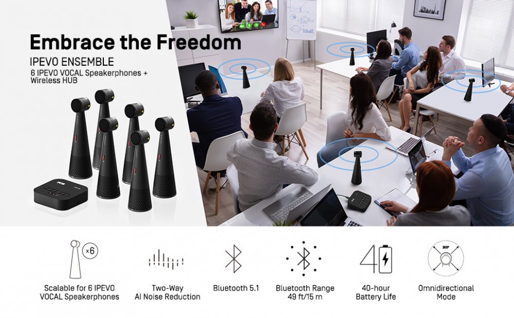 VOCAL HUB無線音訊會議系統提供最大靈活性和彈性佈署,免去複雜佈線與昂貴安裝費,隨插即用操作簡便。搭配TOTEM 360攝影機線上授課,徹底改變校園傳統授課模式。在少子化時代,利用跨校區合作線上授課能減少教師來回奔波,節省重複師資成本,省下來的資源再投入為孩子們提供更多選擇。