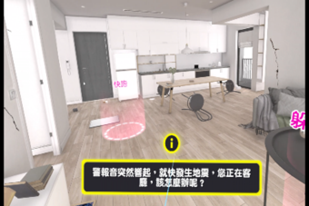 該系統採用IVR沉浸式虛擬現實技術,同時,運用學習鷹架及體感認知學習原理,模擬地震可能會遇到的狀況,產生精熟與錨固學習,強化玩家鏡像神經作用對地震產生制約應變的能力。