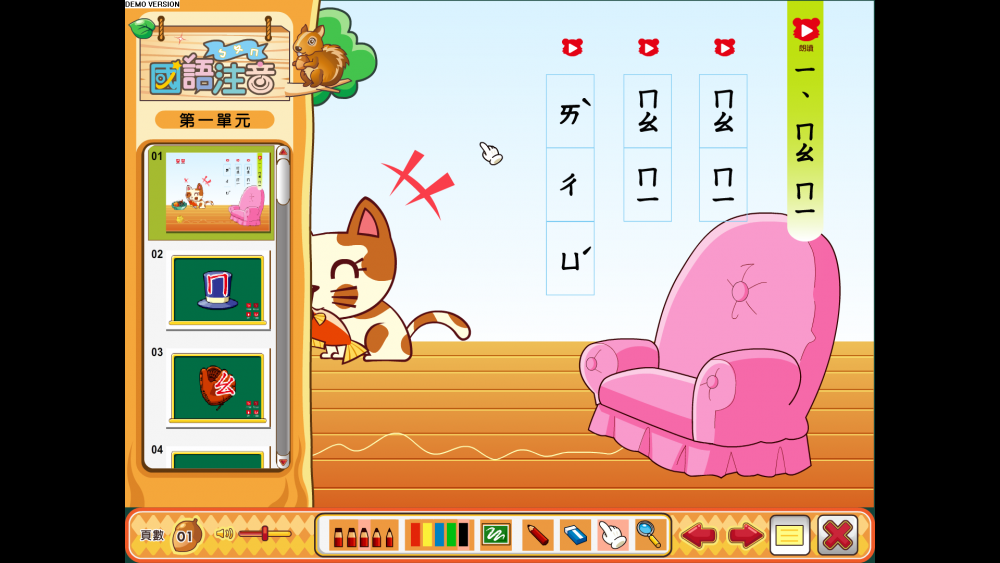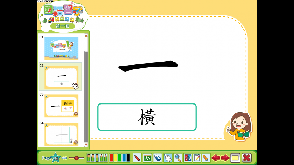 透過互動教學系統,讓任何人都能快速上手教學工作,僅須了解如何操作系統便能完成注音、國字、作文、數學等多項課程。互動式教學動畫讓課堂更有趣,也避免不同老師教學內容的差異,