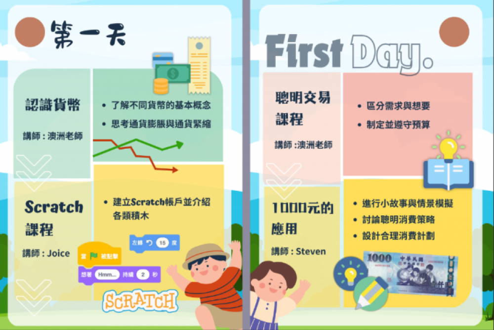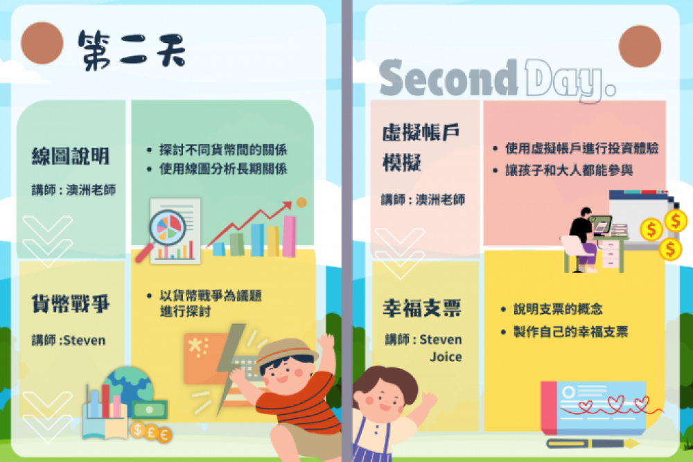 此外,學院還設計了專為兒童打造的金融營隊,透過寓教於樂的活動與互動遊戲,讓孩子從小培養正確的金錢觀念,學習如何管理零用錢並理解簡單的經濟原理。