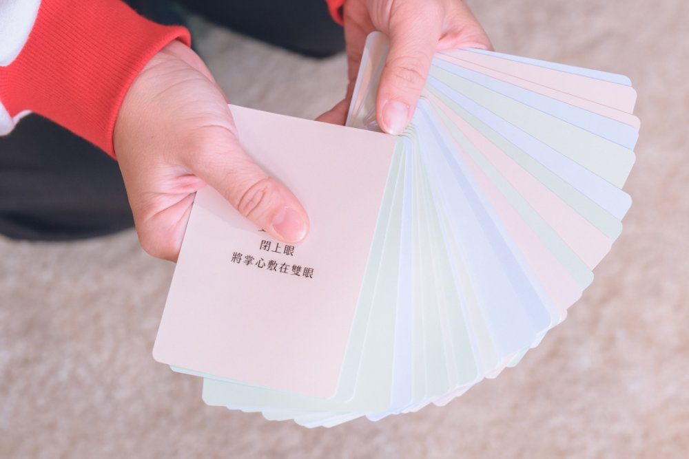 鬧卡包含39張設計卡加上6張空白卡,一共45張,無固定使用形式,內附說明書提供六種與人互動的方式作為參考,更歡迎使用者延伸更多方式使用。當我們越能將注意力放在自己身上,就能讓身邊的人讀到平靜、穩定的氛圍。