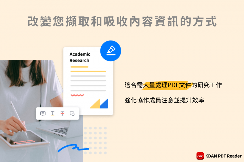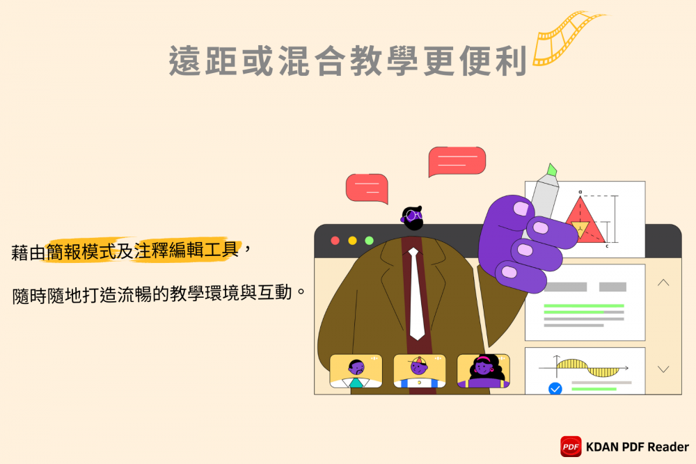 KDAN PDF Reader 是一款全方位的PDF軟體,結合AI智能和先進技術,提升文件製作、管理與分享的效率,進而提高學習與教學效果,讓文件成為便於管理的數位資產,促進資訊交流,創造最大價值。