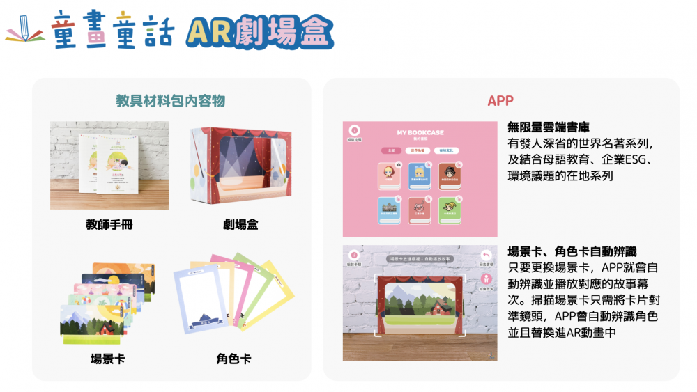 以「本土語言」與「在地文化故事」打造的「AR 科技繪本」,提供獨特的閱讀體驗,培養孩童的素養能力。