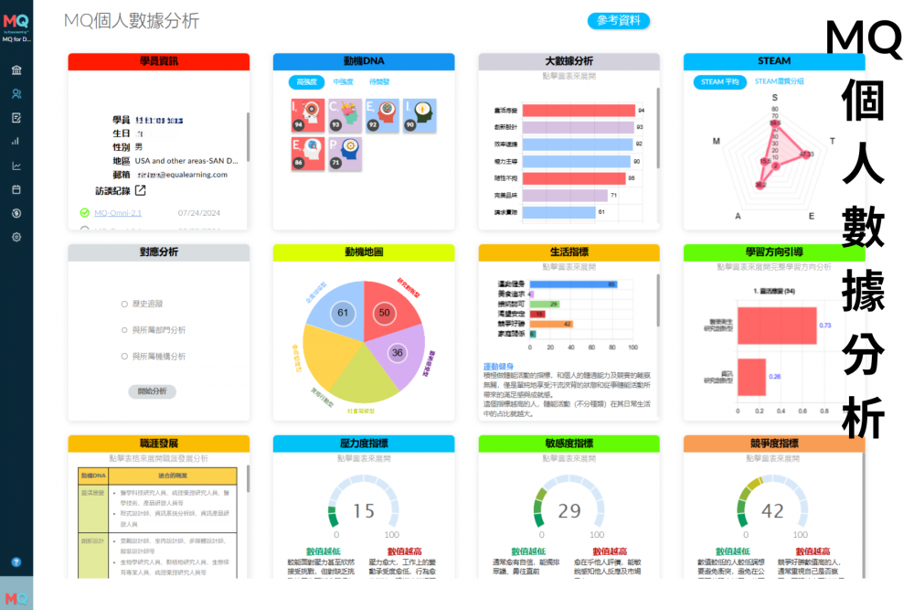 源自美國的MQ動機商數(Motivation Quotient)結合動機心理學、生成式AI與全球大數據,有世界首創的RAG(檢索增強生成)AI顧問小Q(美國專利)。