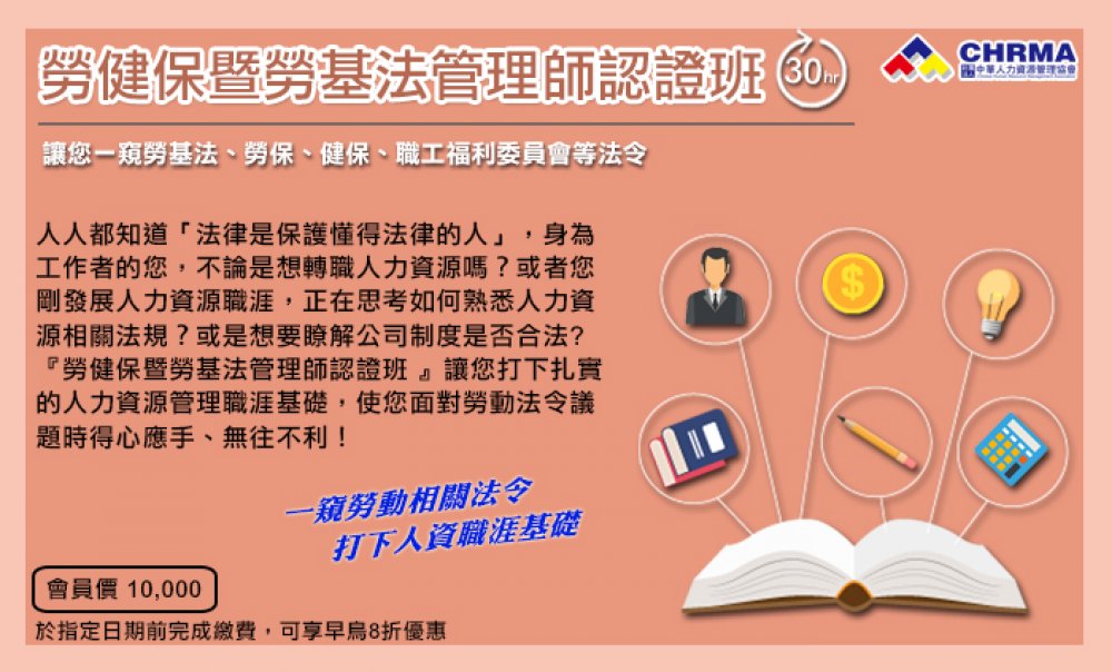 CHRMA中華人力資源管理協會的「全方位基礎人資管理師認證班」,都能滿足您的需求!