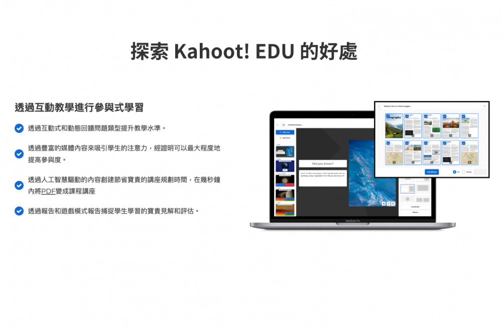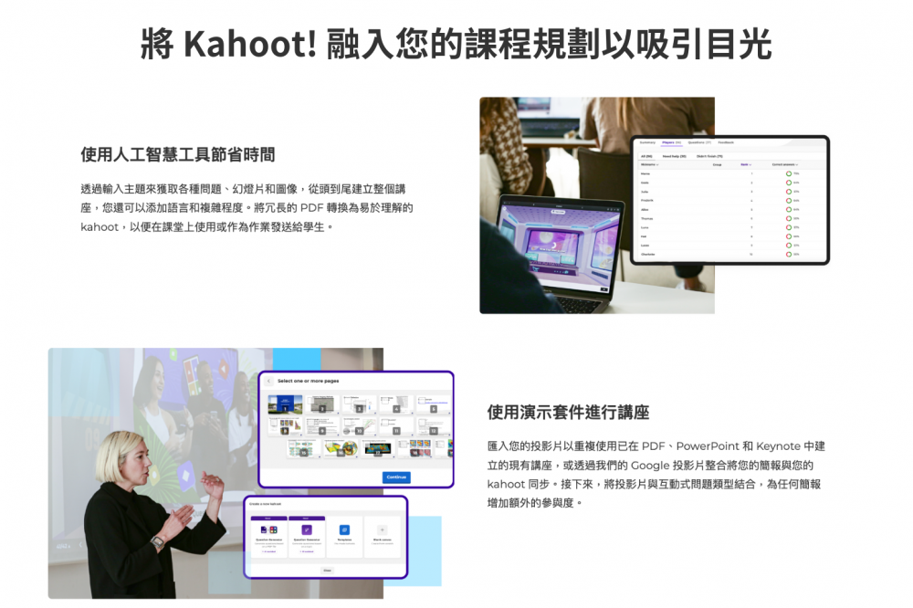 Kahoot! 使學習對學生和教師、企業、家庭及朋友來說變得有趣和引人入勝。在學校,無論是在課堂上教學、遠距學習,還是混成學習,您都可以使用 。Kahoot! 可以用於任何學科、任何年齡段的學生,而且適用於任何設備——學生甚至無需註冊帳戶。