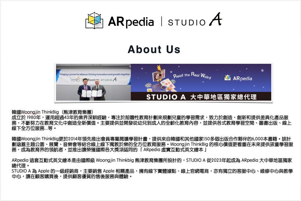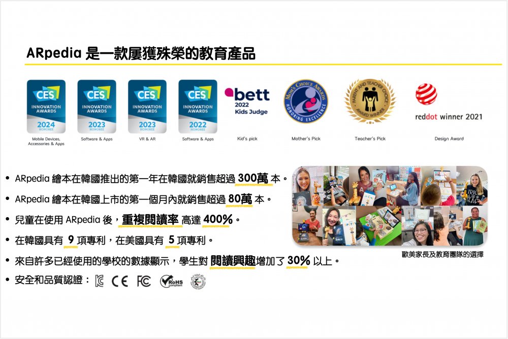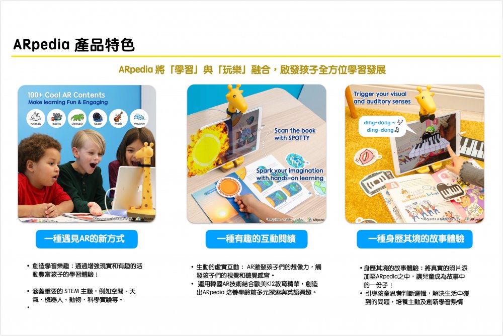 ARpedia是一款AR虛實互動式英文百科兒童繪本,結合歐美K12教學精華、韓國AR科技,打造出STEM多元系列主題5大系列、超過100+英文繪本主題,適合3~12歲孩子,除適合親子共讀也適用校園課程使用,培養孩子多元探索能力、自主學習興趣,劃時代的數位教材最佳選擇!