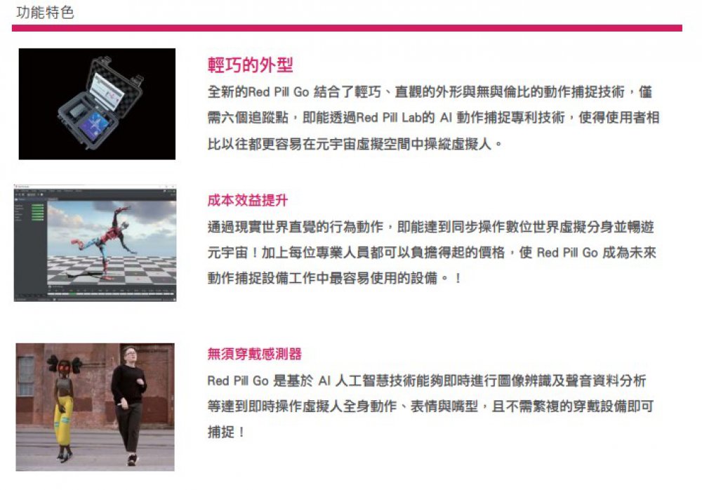 即時動作捕捉:無需繁瑣感測器設置,就可進行全身動補、嘴型同步,完美結合,將自己的動作即時轉換為虛擬形象角色,並和學生/粉絲互動。