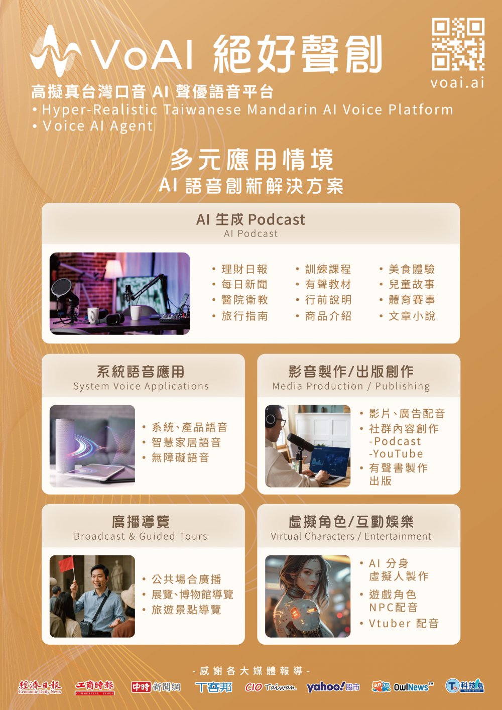 可應用於AI配音、企業語音客服、公眾廣播、影片配音、Youtube/podcast聲音創作、教育學習、休閒娛樂、數位內容等產業服務。