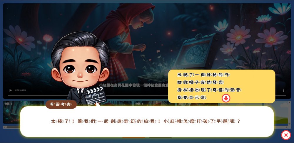 “HelloGPT AI電影導演”不僅是一個學習工具,它提供了一個自由創作的舞臺,鼓勵孩子們勇於探索、發揮想像力。每一個完成的作品都能獲得指導與反饋,循環精進的過程中,孩子們學會欣賞創意,建立對AI世界的認知。