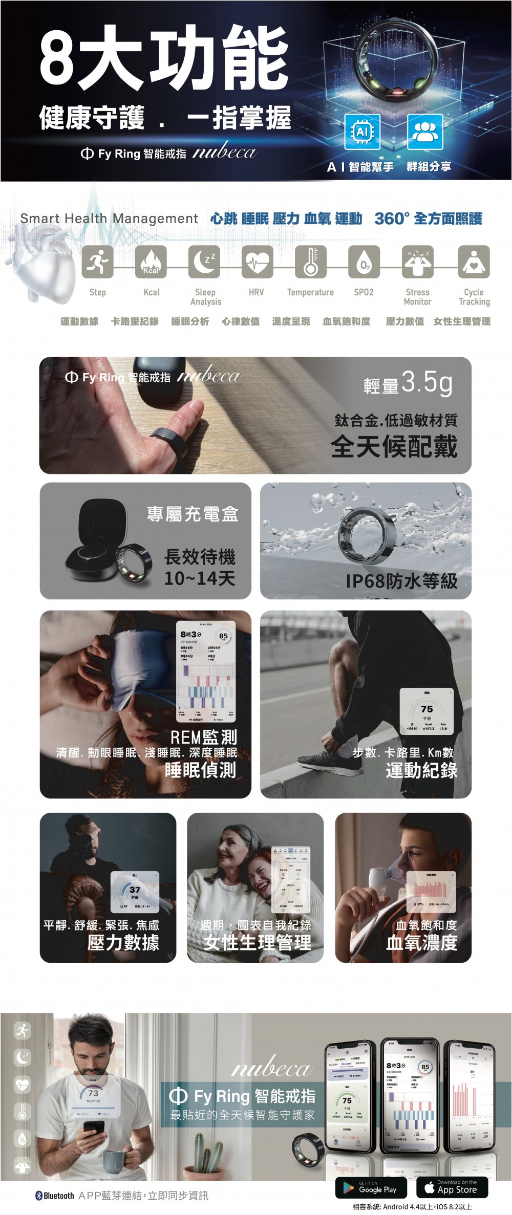 Fy Ring 由日本團隊技術研發並榮獲日本技術協會特別賞殊榮, 健康守護 | 一指掌握, 8大功能特色 。