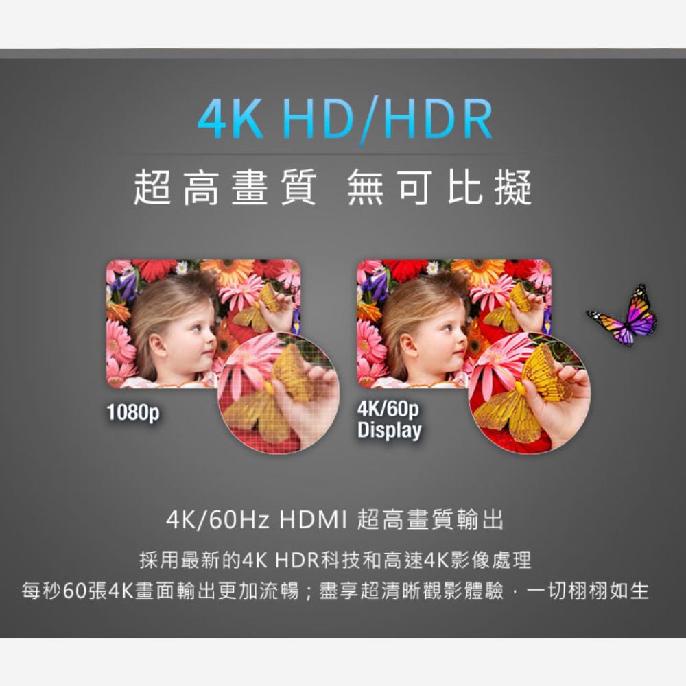 4K/60p 高解析度畫面,體驗 HDR 技術更細緻真實的色彩和亮度,讓每個瞬間都成為無與倫比的視覺盛宴。