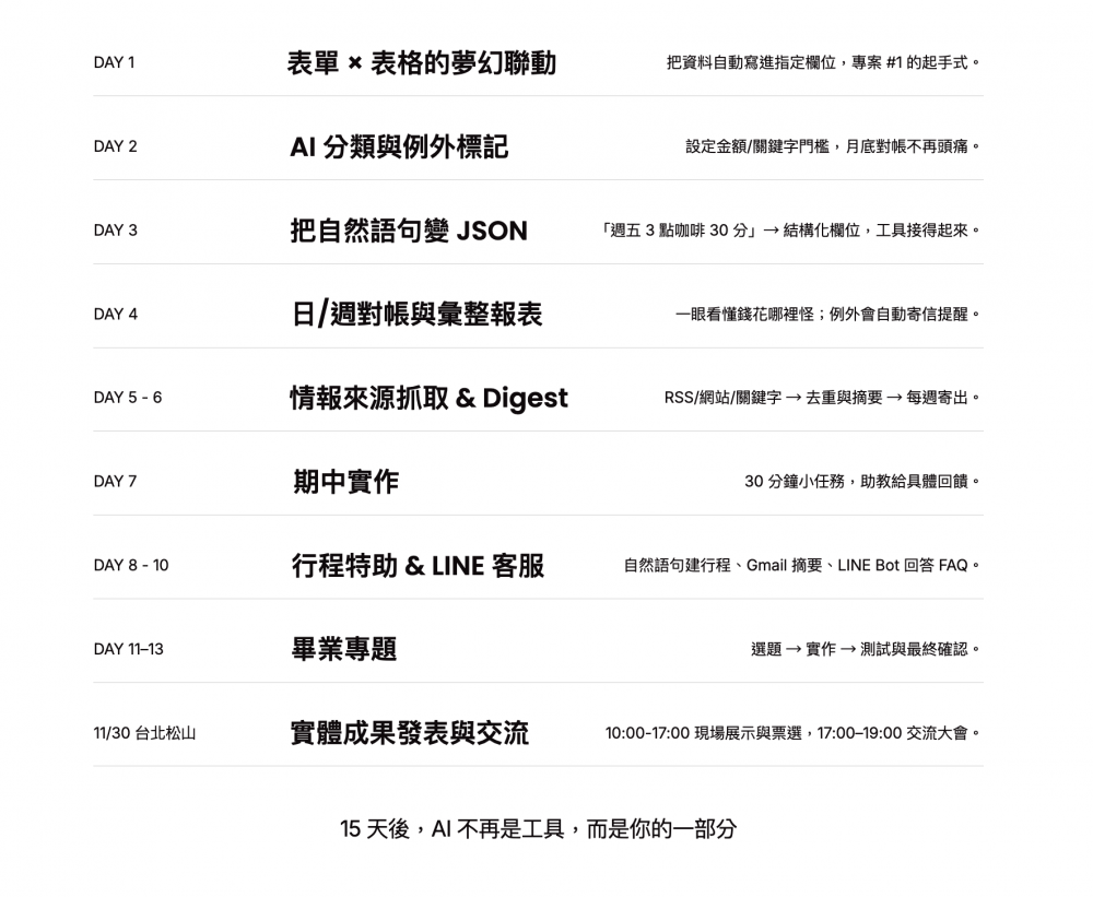 我們將艱深的人工智慧概念,化為故事化、遊戲化的互動學習體驗,讓零程式背景的學習者也能輕鬆掌握生成式 AI 工具,並培養批判思考與創造力。