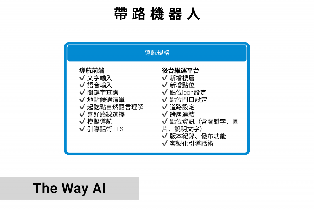 我們的團隊以「無需硬體的室內智慧導航」為應用創新核心,致力於打造不依賴藍牙、Wi-Fi、UWB 等實體裝置的導覽解決方案。結合大型語言模型(LLM)技術,透過語意理解與自然語言生成,實現智慧問答、個人化導覽建議,提升使用者在室內環境中的導覽體驗與互動品質。