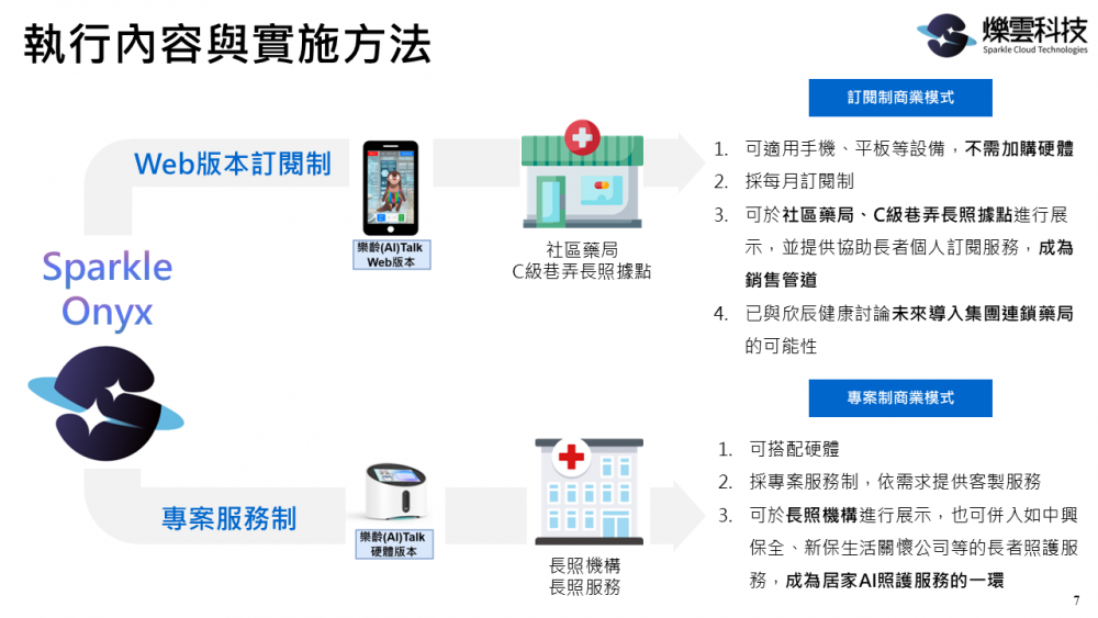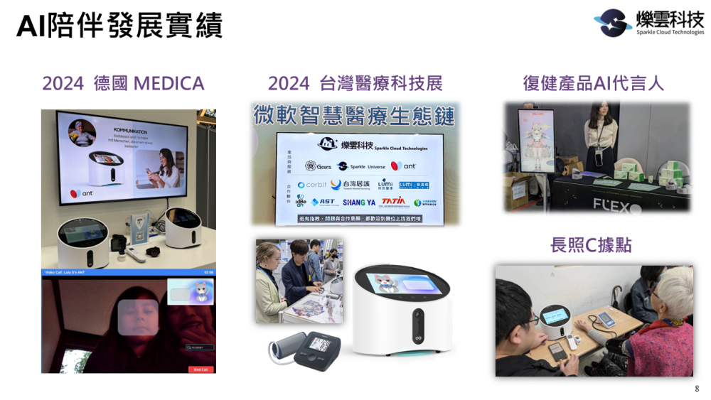 爍雲科技(Sparkle Cloud Technologies)致力於打造溫暖且具情感智慧的虛擬AI角色,推動AI從冷冰冰的工具,成為日常生活中的有感陪伴者。本次展出聚焦「智慧陪伴 × 樂齡共感」,展示我們專為中高齡族群設計的AI陪伴方案-Sparkle Onyx,包括影像識別、語音識別(ASR)、文字生成(LLM)、個人記憶、日常情緒陪伴等功能,透過高擬真自然對話與使用者互動分析,提升樂齡者的生活參與感與數位自信。