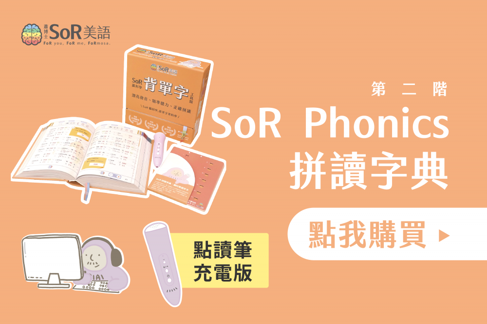 蕭博士 SoR 美語著重英文聽說讀寫全能訓練。教材取得臺灣二項發明專利、四項新型專利,亦是最新腦神經科學能佐證功效的教育系統,其教材與課程,緊貼美國國會「科學閱讀金字塔」。想開啟學習英文之旅,蕭博士SoR美語是您最好的選擇!