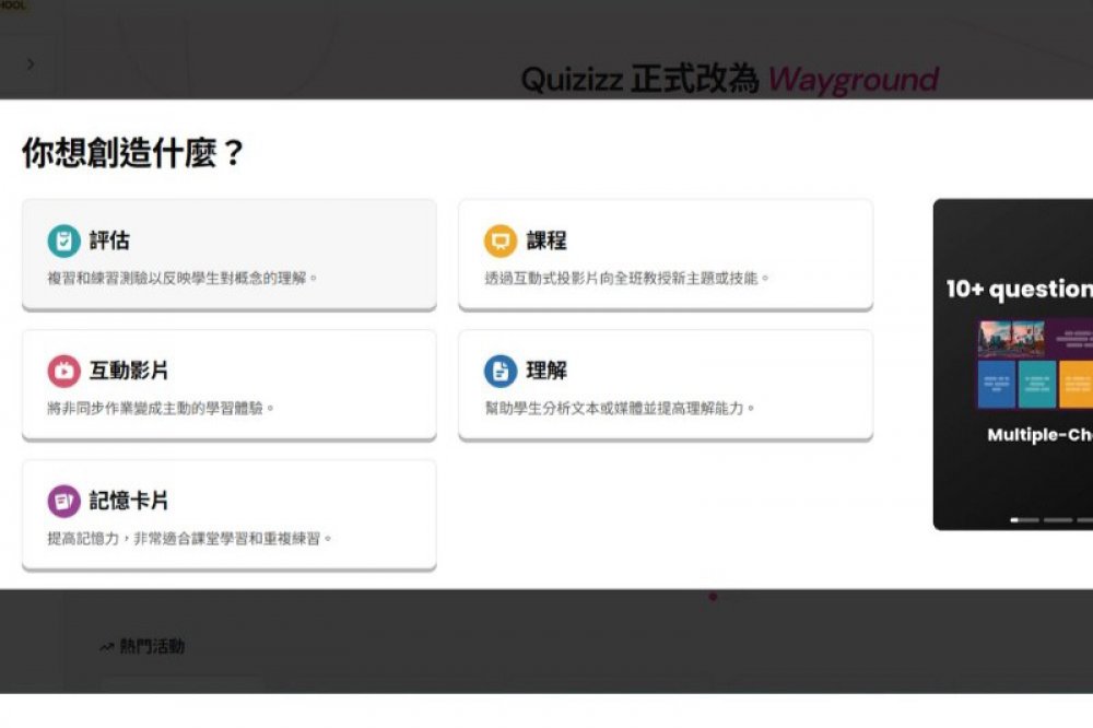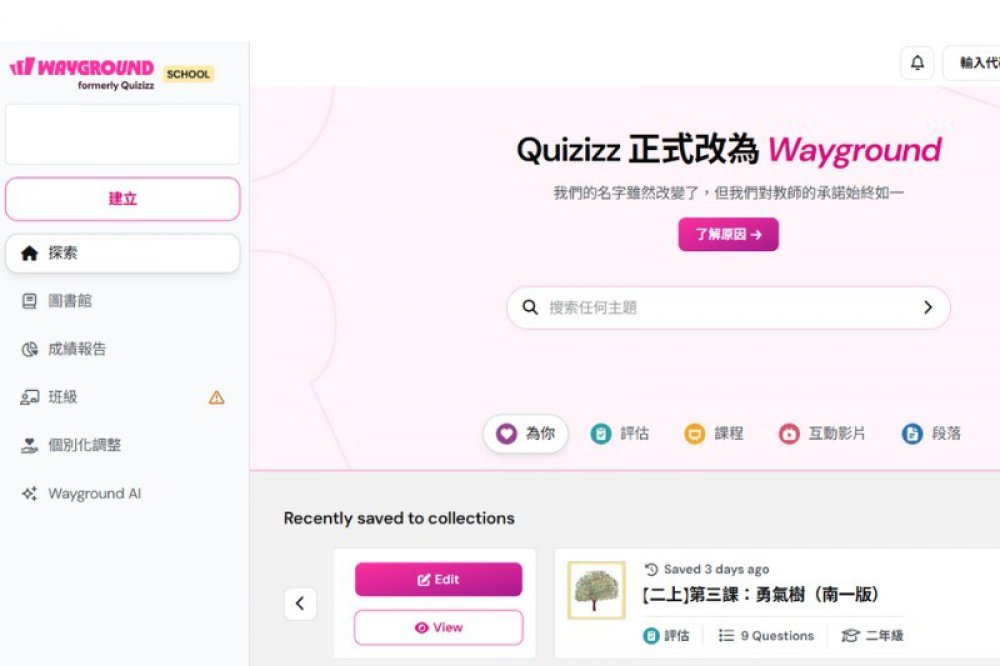 Wayground 是一個以教師為核心設計的互動教學平台,原名 Quizizz,現由謙懿科技代理推廣於台灣。它結合人工智慧與遊戲化學習,支援教師在備課、教學、評量與回饋等各階段進行高效管理。教師可透過平台快速建立題目、嵌入 YouTube 教學影片、分析學生學習數據,並即時調整教學策略。Wayground 支援多種題型與自適應學習模式,讓學生能依自己的節奏參與互動,提升學習動機與專注力。平台亦提供與 LMS 系統整合的功能,方便學校進行全面教學管理。透過在地化介面與題庫建置,Wayground 致力於貼近台灣教育現場,並推動 AI 教學工具的普及與創新。