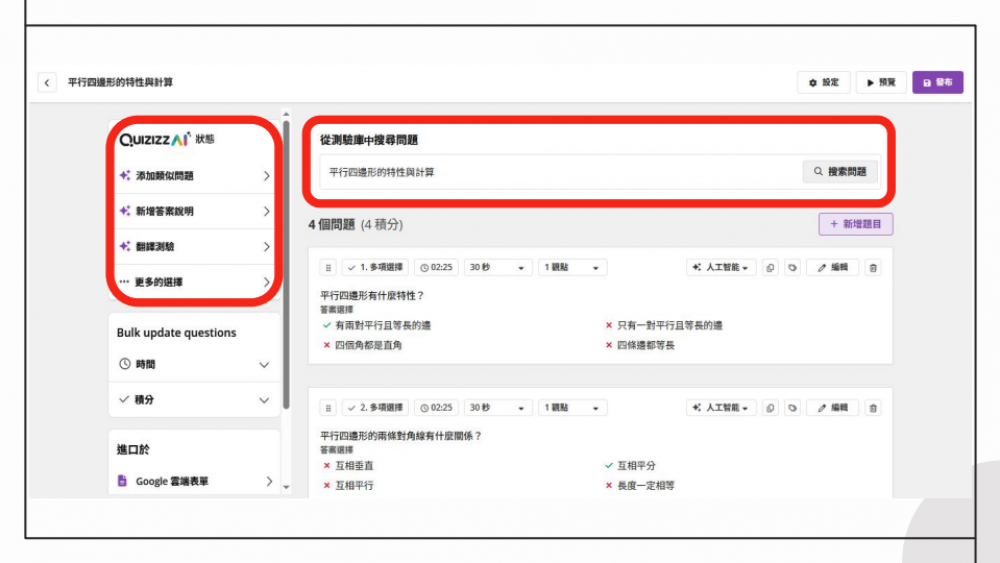 不只學生愛玩,老師備課也更輕鬆。過去老師常為了備題而苦惱,不是靠出版社的十題八題湊數,就是被迫放棄互動式教學。Quizizz 的 AI 出題,正好解決這個痛點。老師能選擇經典模式(學生各自進行)或老師節奏模式(一起看影片、一起回答)。阿凱老師特別推薦經典模式的「攻擊與防守」玩法,一邊練題一邊競爭,學生玩得不亦樂乎。從數學單元到警政宣導,AI 都能處理。