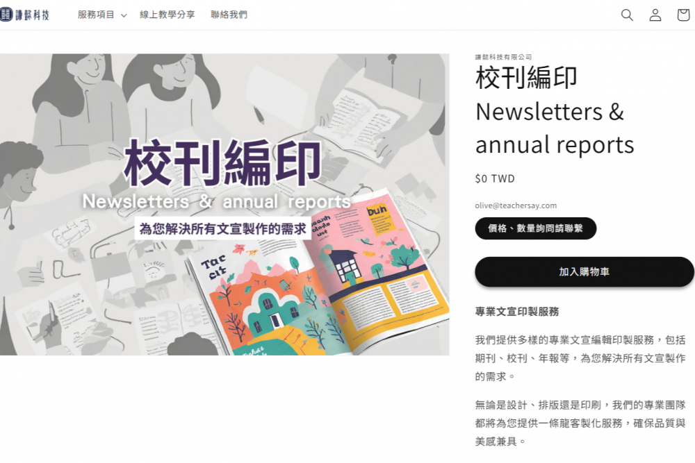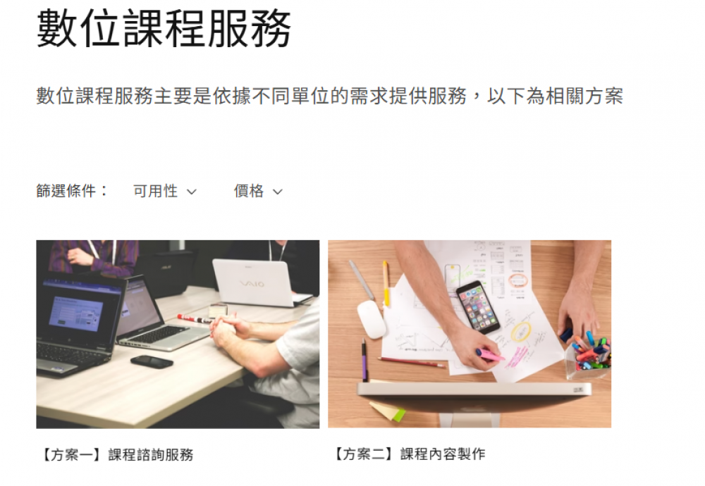 服務項目包含「教育推廣」、「銷售代理」、「內容、平台開發」。