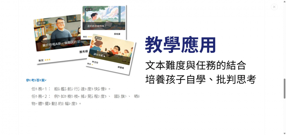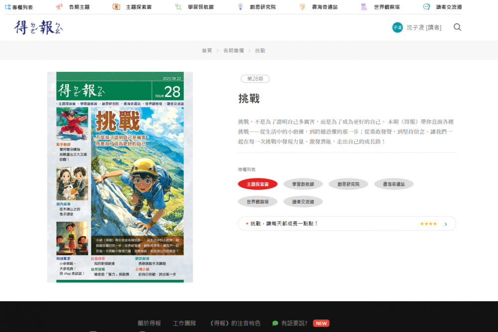「得報」是全國首創的教育網路原生報紙,專門設計來配合國中小的教科書教學進度。我們每週提供量身定制的閱讀文本和學習單,助力學生的自主學習,讓教育更貼近生活,更貼近未來。