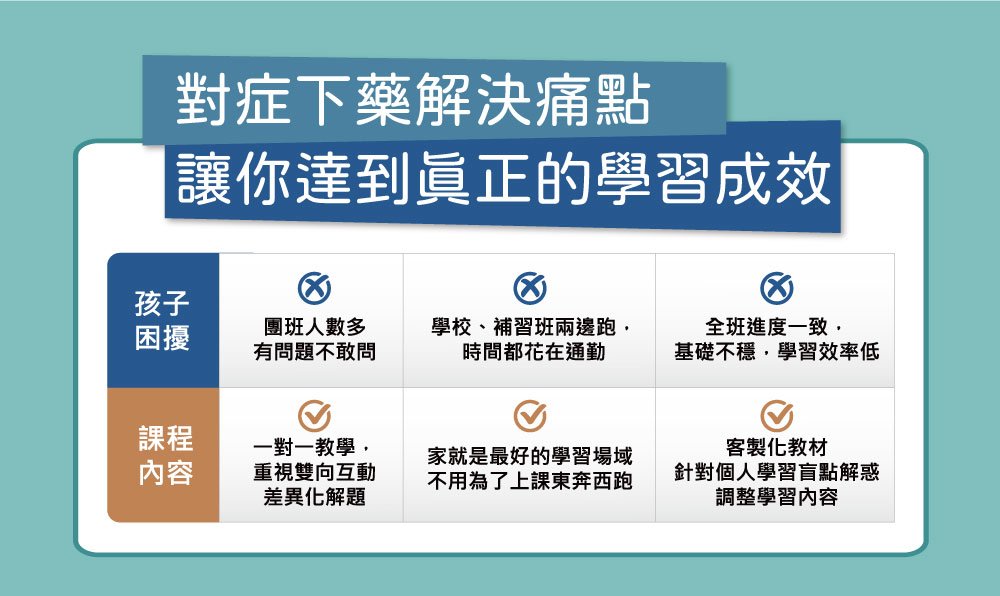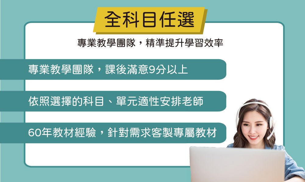 【雙師制度】3年以上教學經驗的授課教師一對一適性教學,優質輔導老師伴學解答疑問