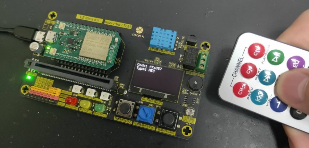 ‧紅外線接收:可以接收紅外線遙控器發出的訊息,所以執行這次的範例程式,需要事前準備紅外線遙控器。
