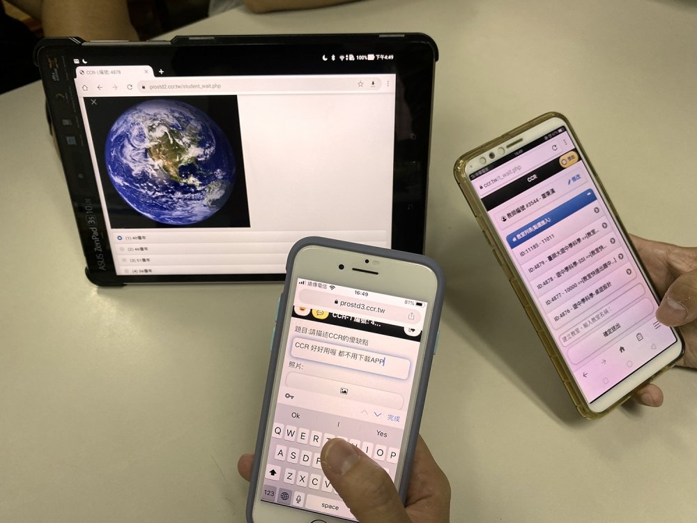 由於智慧手機設備和行動網路使用的普及,越來越多的學校開始採用自帶設備(Bring-Your-Own Device, BYOD)政策,使學習更加愉快和有效。隨著這一趨勢,CloudClassRoom(CCR)的開發將智慧手機設備轉變為強大的課堂學習互動工具。 CCR適用於每個支持Internet的設備,無需進一步的軟體或APP安裝。它可以跨平台運行,無論使用的是iOS,Android還是Windows。一旦教師將他/她的設備連接到CCR,他/她就可以輕鬆地發起匿名測驗。除了傳統的強制選擇題外,CCR還可以讓學生回覆短文,圖片甚至表情符號。學生的答案會自動匯總和分析,為教師即時提供學生學習進度的大致畫面。